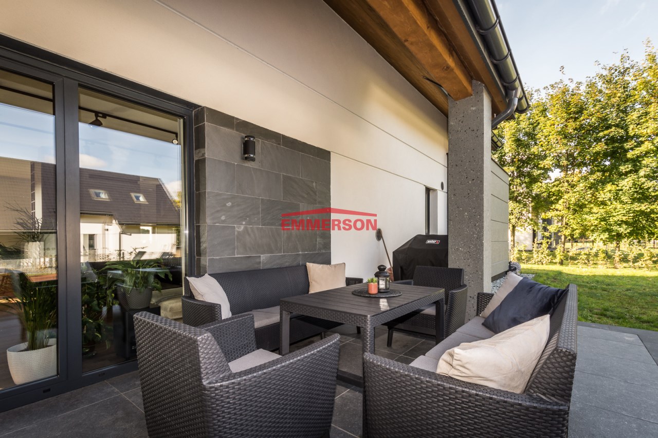 System automatycznego nawadniania, pozwoli cieszyć się zielenią bez zbytniego wysiłku! Taras jest wykonany z drewna, a wieczorami klimatu nadaje zastosowane oświetlenie.