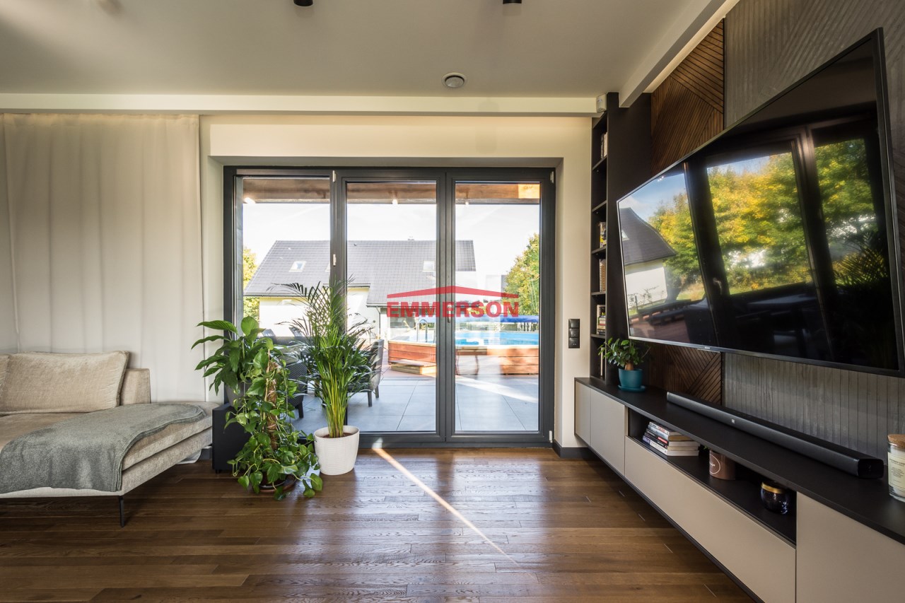 Ten przestronny dom z basenem, wykończony w wysokim standardzie dedykowany jest dla klientów dbających o wysoki komfort, harmonię oraz styl życia.