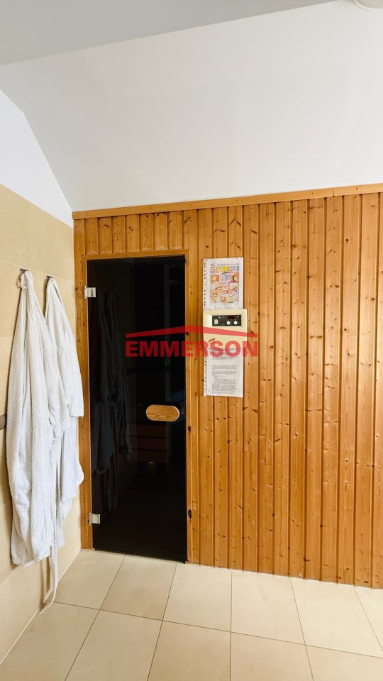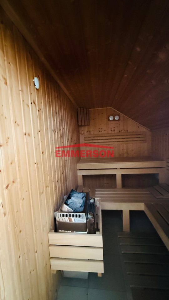 Dodatkowo na piętrze w oddzielnej wydzielonej strefie z oddzielnym wejściem znajdziemy - odrębne mieszkanie salon z kuchnią i łazienką, które niegdyś było mieszkaniem służbowym dla pracownika oraz strefę relaksu i wypoczynku tj. saune suchą i saunę parową.