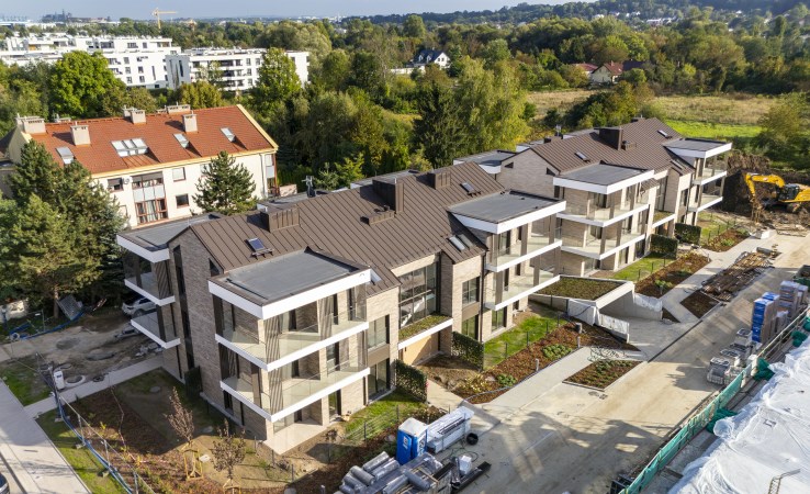 Apartament znajduje się w prestiżowej lokalizacji, kameralnym i malowniczo położonym kompleksie willi miejskich w sercu Bronowic Małych. Dwupiętrowe budynki (z windami) wzniesione zostały w najwyższym standardzie, z dbałością o detale, o nietuzinkowej i eleganckiej architekturze.
