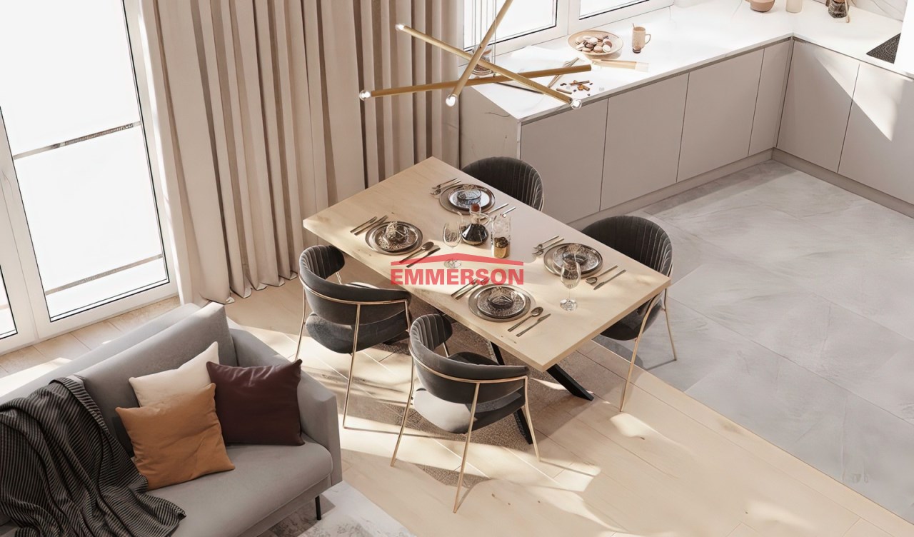 The apartment is part of a new development built in two stages, consisting of four 5- and 6-storey apartment buildings with silent-running elevators, surrounded by greenery and low-rise residential buildings. On level –1, there are parking spaces and storage units.