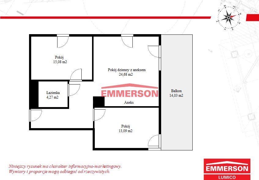 Funkcjonalne 3 pokoje z dwoma balkonami 14m2