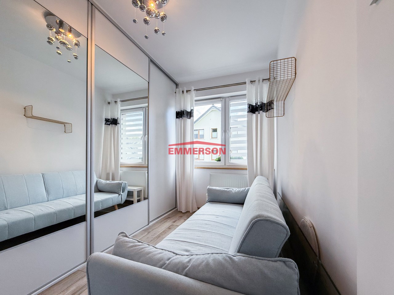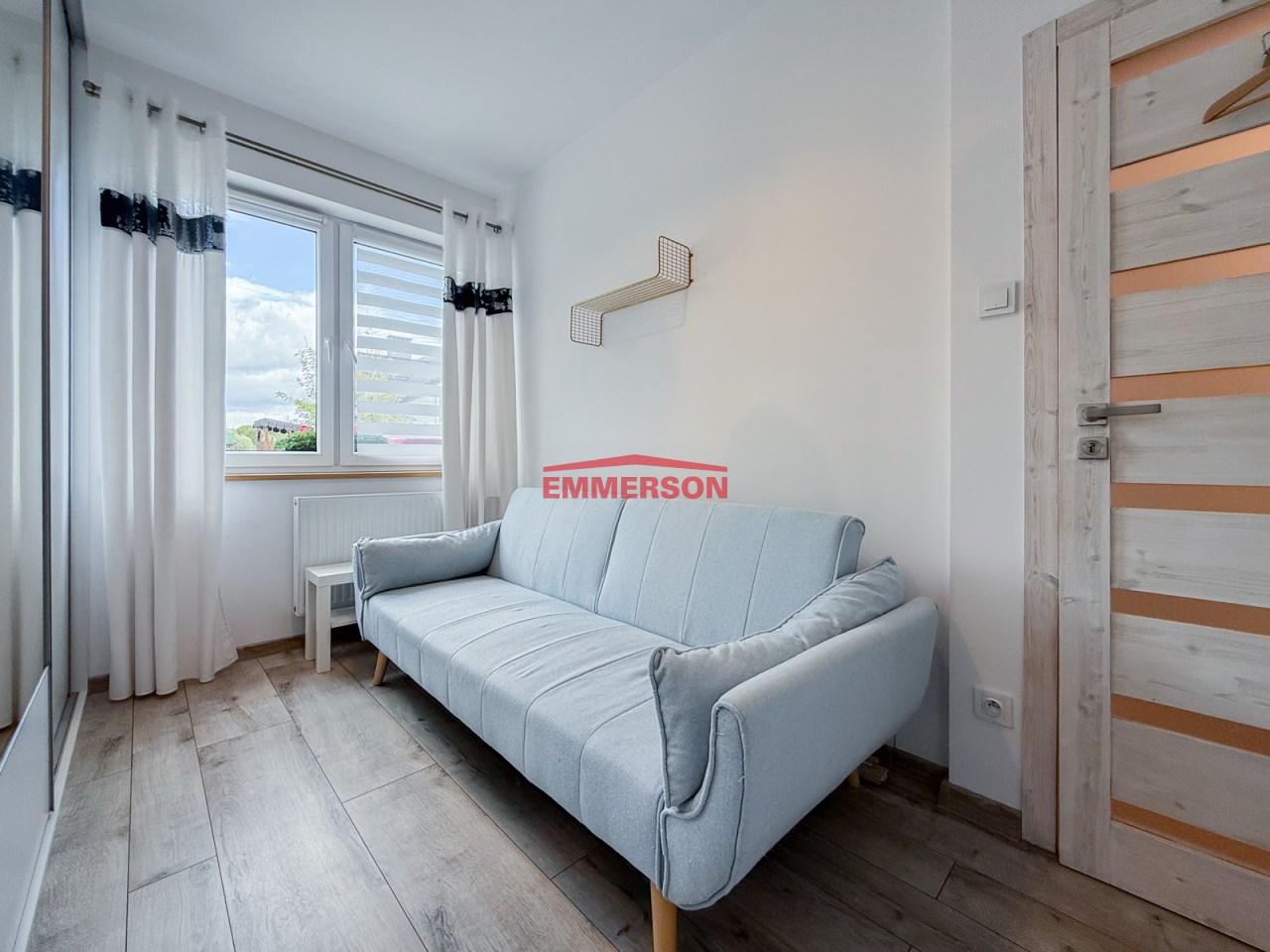 Mieszkanie składa się z trzech oddzielnych sypialni, obszernego salonu z otwartą kuchnią, łazienki, przedpokoju.